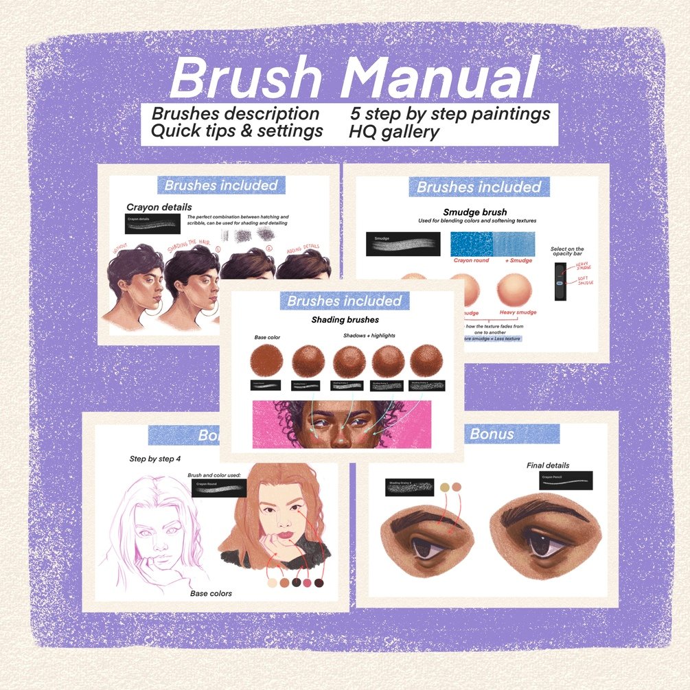 1 PDF manual with brush description, tips and step by step examples