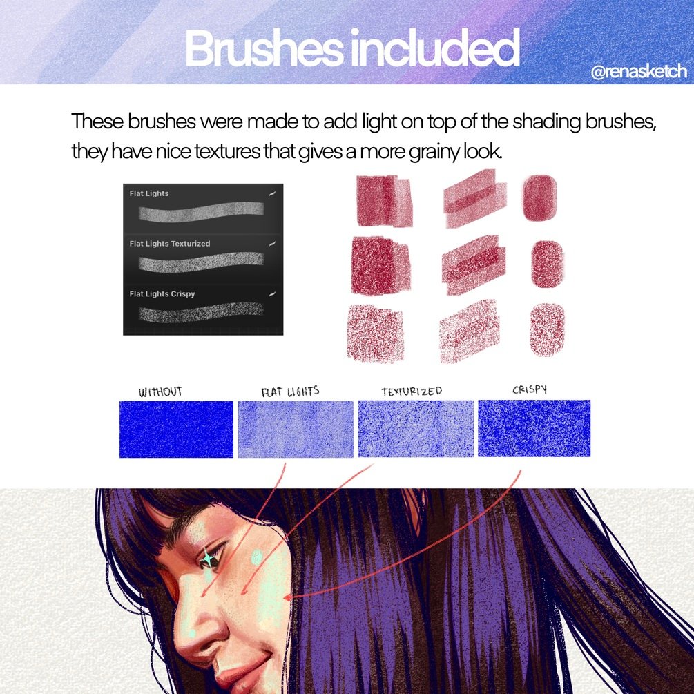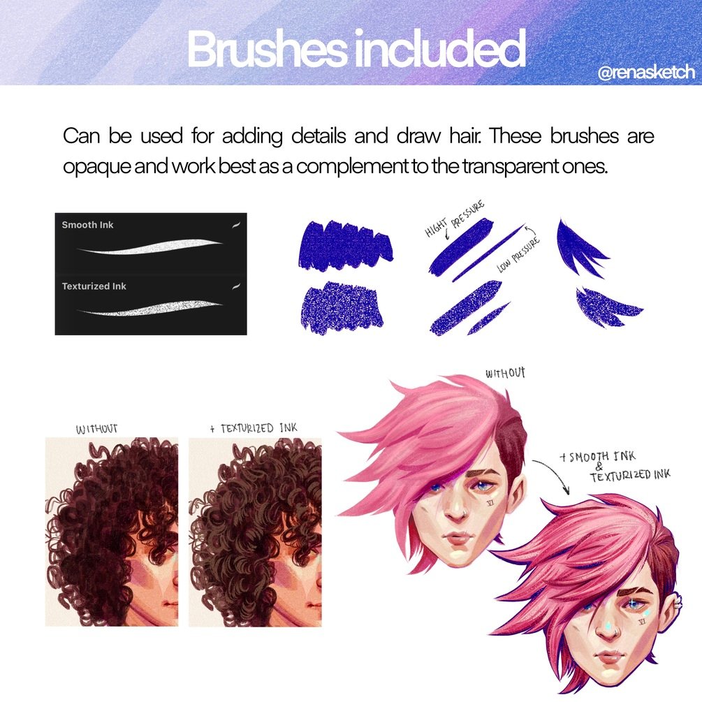 The Magic Markers brush set includes 12 brushes that will allow you to paint full rendered illustrations, all brushes have different textures that complement each other and will give a unique look to your works. It also includes my favorite texture to level up the result even more!